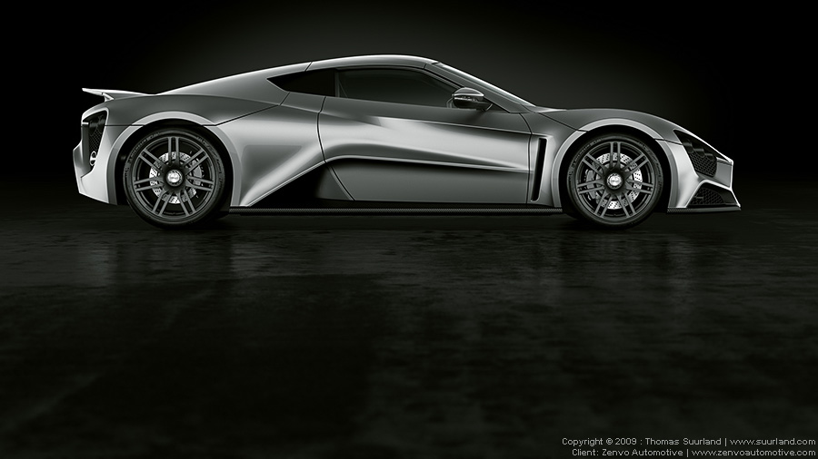 Renderings of the first Danish supercar. 7 Litre V8 Engine developing 1104bhp, top speed limited to 375km/h. For more info visit Zenvo Automotives homepage.